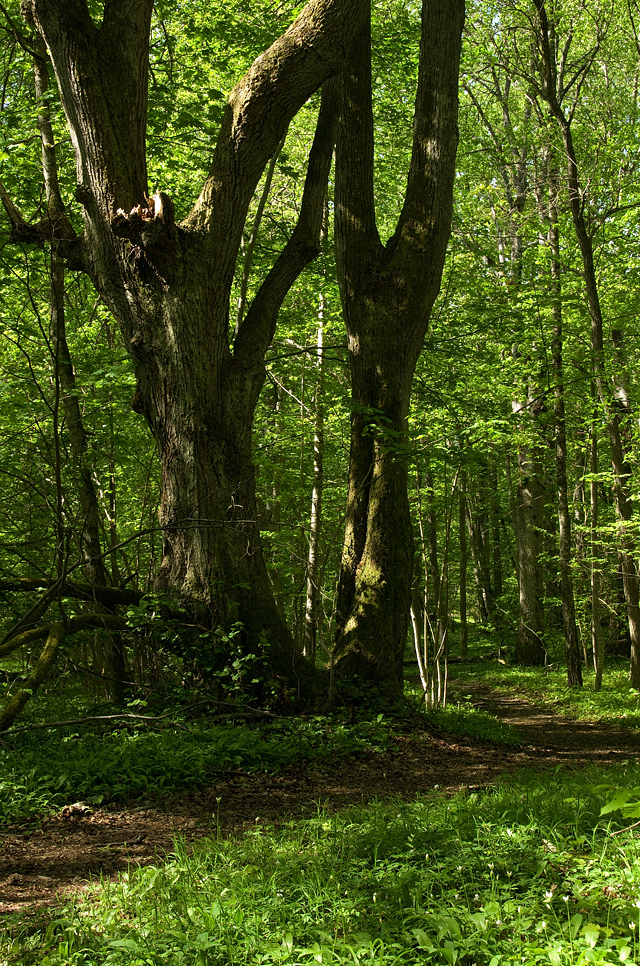 I gammelskogen trivs havsörn, fiskgjuse och ramslök. Det går reguljär färjetrafik till Ängsö.