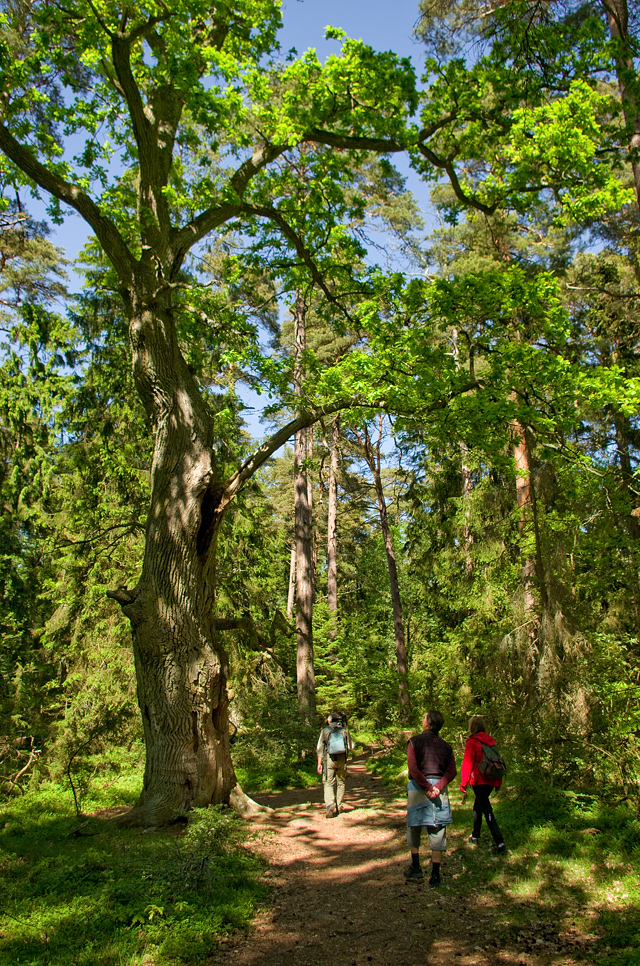 När man kommer ut till den östra stranden möts man av vraket från skonaren Swiks som förliste vid juletid 1926. Längs vägen växer det riktigt gamla ekar som har höga naturvärden med lavar som grön spiklav och gulpudrad spiklav. Den äldsta eken kallas trolleken och står en bit norr om vraket. På de gamla tallarna hittar man tallticka som är en signalart för gammal tallskog. Även långhorningen timmerman gillar tall och kan ses på våren. I skogen växer det även linnea och ryl.